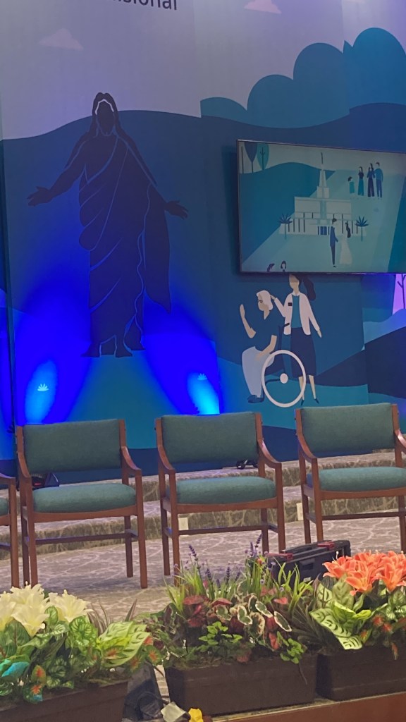 El sábado fui a un seminario para lideres de misioneros de servicio para una actividad en el Centro Multiestacas de Aragón, junto al templo, en la que los lideres de misioneros de servicio de todo el país tuvieron la oportunidad de convivir con nosotros, nos dieron un pequeño refrigerio y luego sentaron a un misionero en cada mesa de lideres para que le platicáramos sobre los desafíos que teníamos. Cuando yo me senté con ellos, dos matrimonios de lideres de misioneros de servicio me sentí como «wow, demasiada atención» y no sabia qué hacer con tanta. Les conté que me resultaba difícil sentirme como una misionera de verdad porque a veces no me trataban como una y ellos me dieron mucho mucho consuelo. Me escucharon y me motivaron, incluso al final las Hermanas me dieron un abrazo y uno de los hermanos me dijo «si fuera mi hija, la abrazaría».