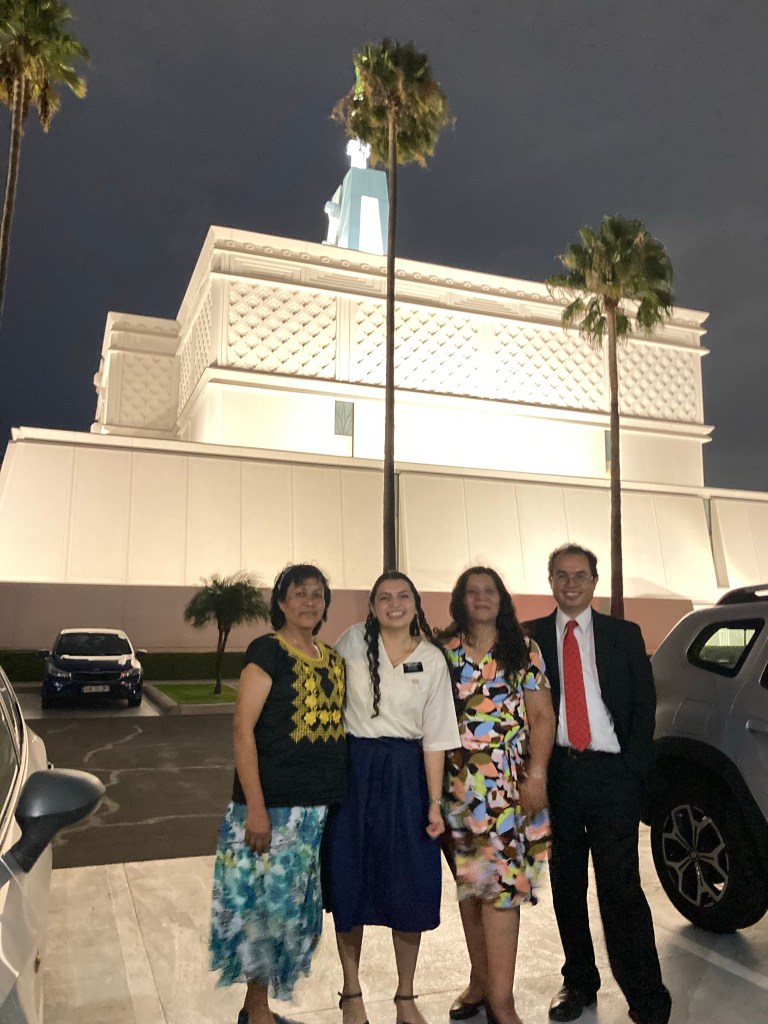En esta ultima foto esta mi tía Lita, yo, mi mamá y mi papá frente al templo, la foto la tomaron unos misioneros de servicio, una tomo la foto y otros dos alumbraron con la luz de su celular (misioneros de servicio sirviendo siempre)