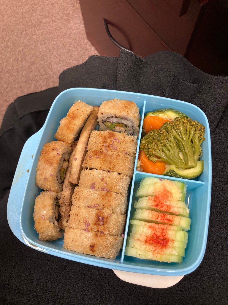 Una de las bendiciones y también maldiciones de la misión de servicio es que tengo que hacer mi comida, a veces puedo hacerme cosas bien cool como este sushi frito y otras veces como frijoles de bolsa ja, ja, ja.