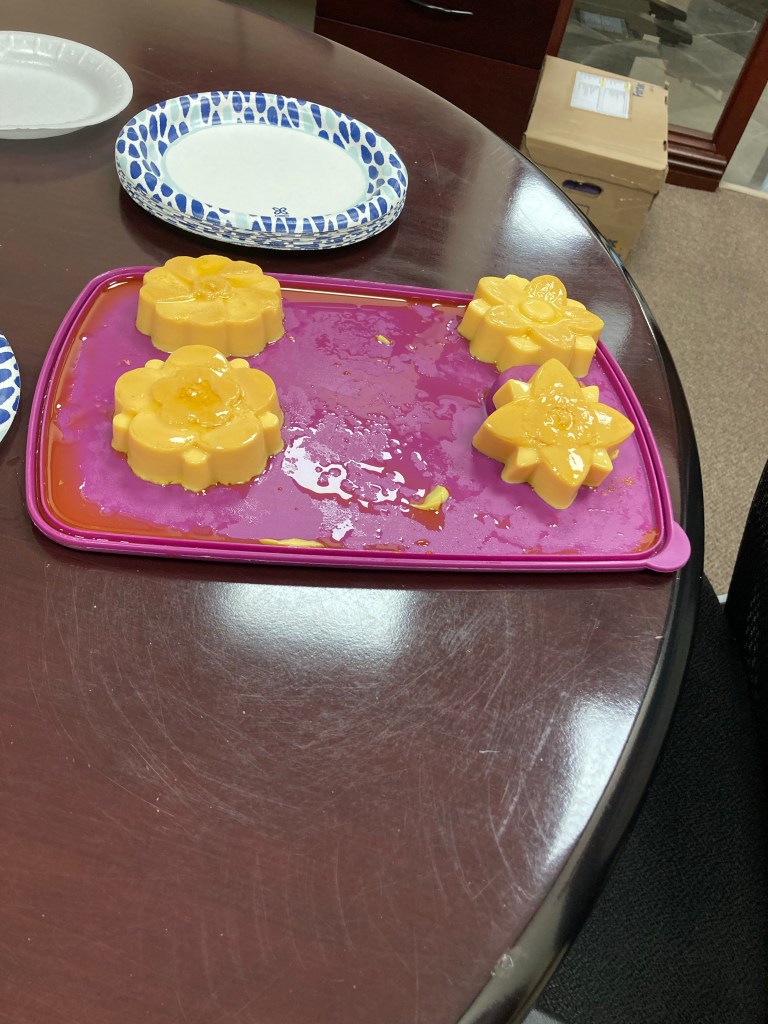 El lunes y martes en Comunicación estuve muy enfocada en la redacción de artículos para la Liahona y el sitio web. La hermana Frandsen fue a Guadalajara esta semana y la extrañé mucho. El lunes estaba muy ansiosa y por eso mismo me dolía mucho el intestino pero traté de trabajar lo mejor que pude. El cumpleaños de la hermana Michelle López fue el viernes 11 de agosto y el martes (que es e día que nos vemos) le lleve su postre favorito: flan. Fue lindo compartirlo con todos los hermanos de las oficinas de al lado.