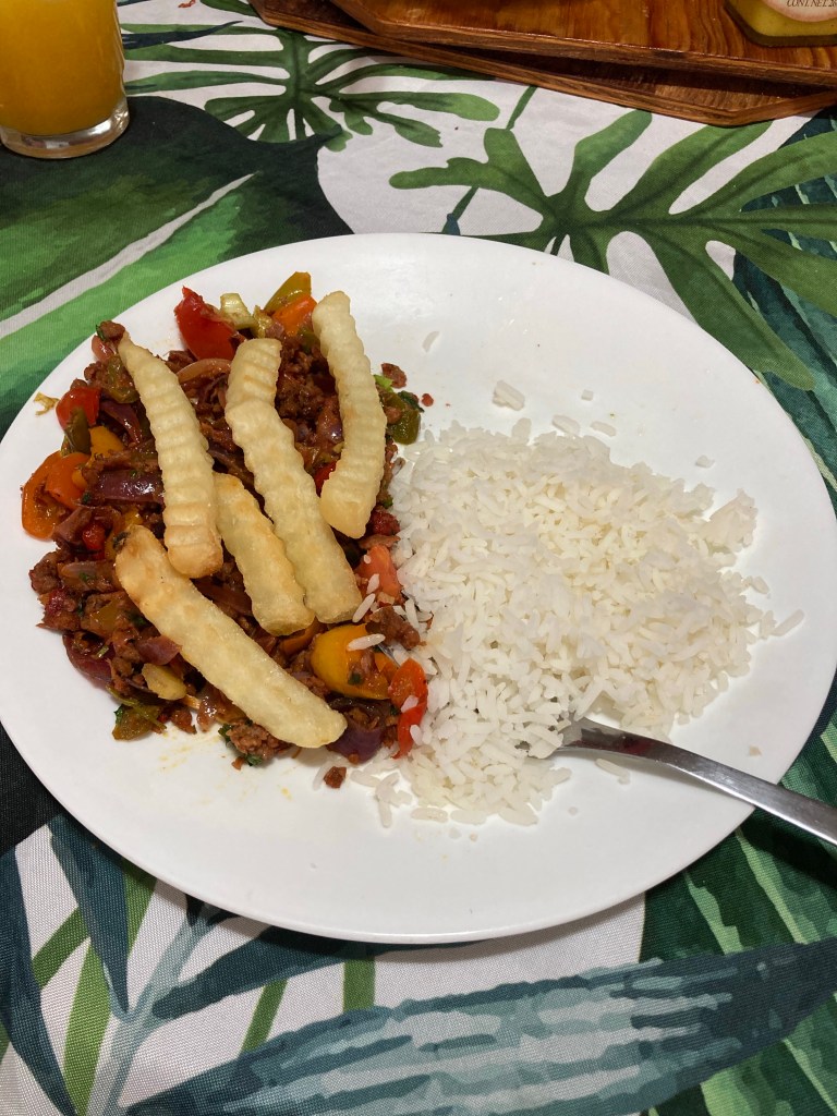 El domingo mi hermano Lalo y su novia Charly hicieron un platillo peruano llamado lomo asado que mi hermano aprendió en su misión en Argentina. Sentí bonito que hicieron una versión vegana para mí.