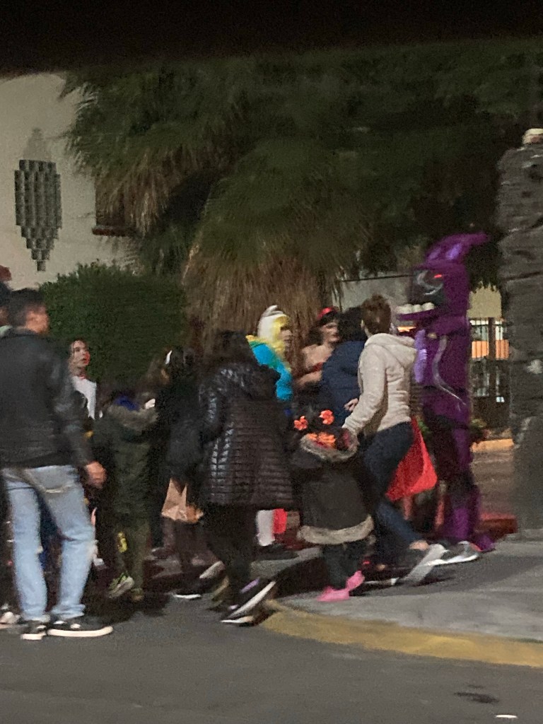 De regreso, cuando ibamos en el coche vimos a muchas familias con sus niños disfrazados para pedir dulces.