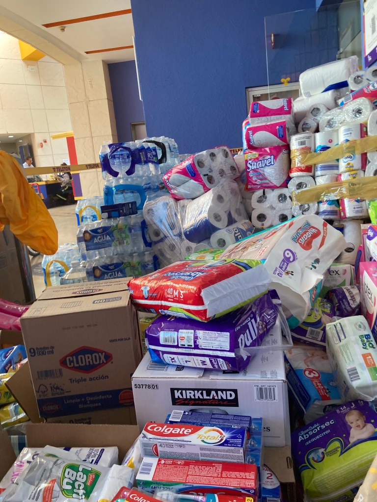 El viernes me puse a recortar muchas cosas en el CRIT para los niños de terapia del lenguaje, no había mucho trabajo, yo creo que por las fiestas, pero más tarde me pusieron a acomodar víveres del Centro de Acopio para los damnificados del Huracán Otis en Guerrero.