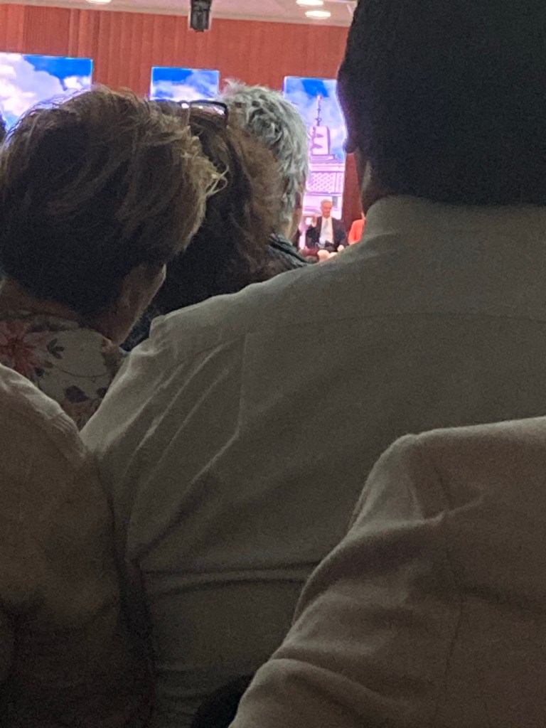 A pesar de que llegué una hora temprano par alcanzar lugar, ya había muchísimos hermanos. Me tocó un lugar en el foro, hasta atrás, en la última fila, literalmente recargada en la pared y apenas podía ver de lejos al élder Bednar. Sin embargo sentí mucho el espíritu y con su mensaje me sentí inspirada a ser una mejor obrera, más humilde y a amar más a los participantes. Me sentí muy afortunada de poder estar frente a un apóstol de Jesucristo.