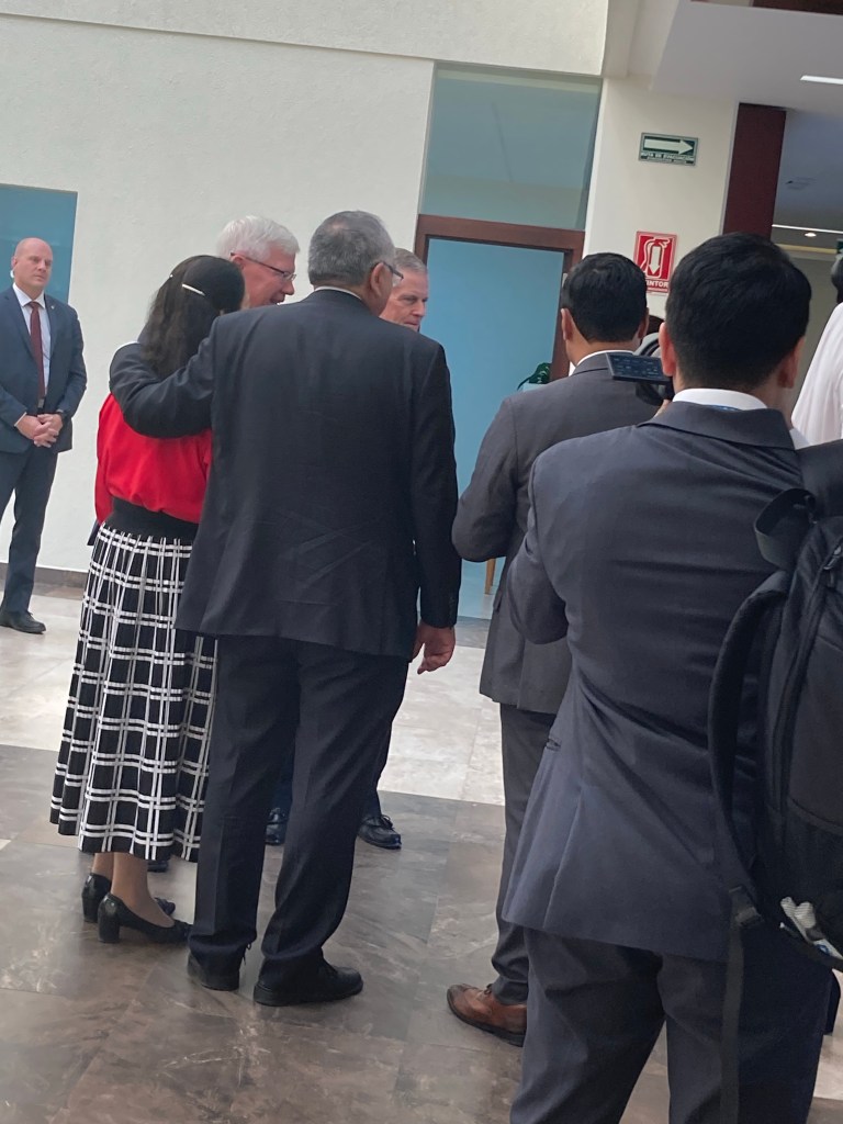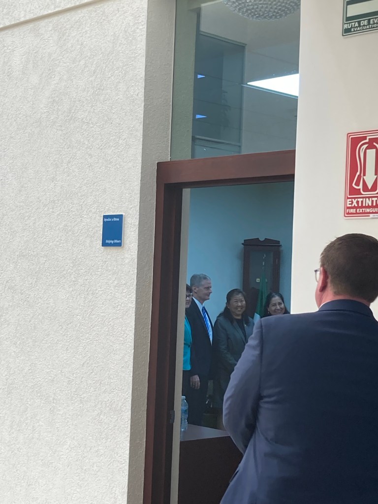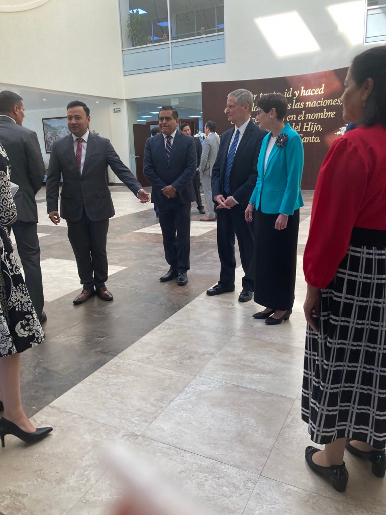 El recorrido fue muy hermoso. Yo no tenía la intención de estar presente en todo momento pero al ofrecerle mi ayuda al hermano Michael de Church News me pidió que lo acompañara para ayudarle con cosas de su cámara y como él era el fotógrafo, tenía que seguirlo a todas partes. De esta forma pude estar mucho tiempo con el grupo. El élder Bednar y los embajadores se reunieron con pequeños grupos de misioneros que iban tanto a Nicaragua como a Filipinas. Me dio mucho gusto que los misioneros de Filipinas a quienes había ayudado con sus visa una semana atrás estuvieran ahí, realmente creo que es un milagro que haya coincidido que ellos estuvieran ahí. Tanto la embajadora de Filipinas como el embajador de Nicaragua estaban encantados con los jóvenes y les ofrecieron apoyo durante su estancia en México.