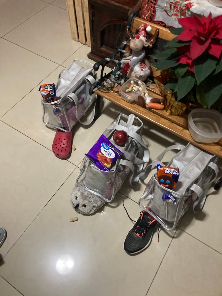 El sábado fue el día de reyes, los reyes magos nos trajeron cosmetiqueras, a mis hermanos les trajeron paletas payaso pero como yo soy vegana a mí me trajeron una manzana y unas papas, lo cual se me hace muy chistoso. Los animales de los reyes magos dejaron un caminito de cacahuates, un traste con agua a medio tomar y una zanahoria mordida.