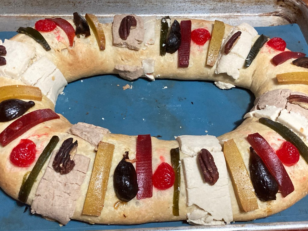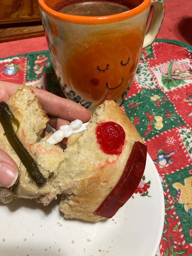 El domingo por la mañana compartí mi testimonio del Libro de Mormón en la reunión de testimonios y luego tuve mi clase de escuela dominical con el Hermano Aquino. Por la tarde hice una Rosca de Reyes vegana, sólo le puse un niño y me salió en la primera rebanada. El resto de la rosca la voy a compartir entre los hermanos de la oficina del área.