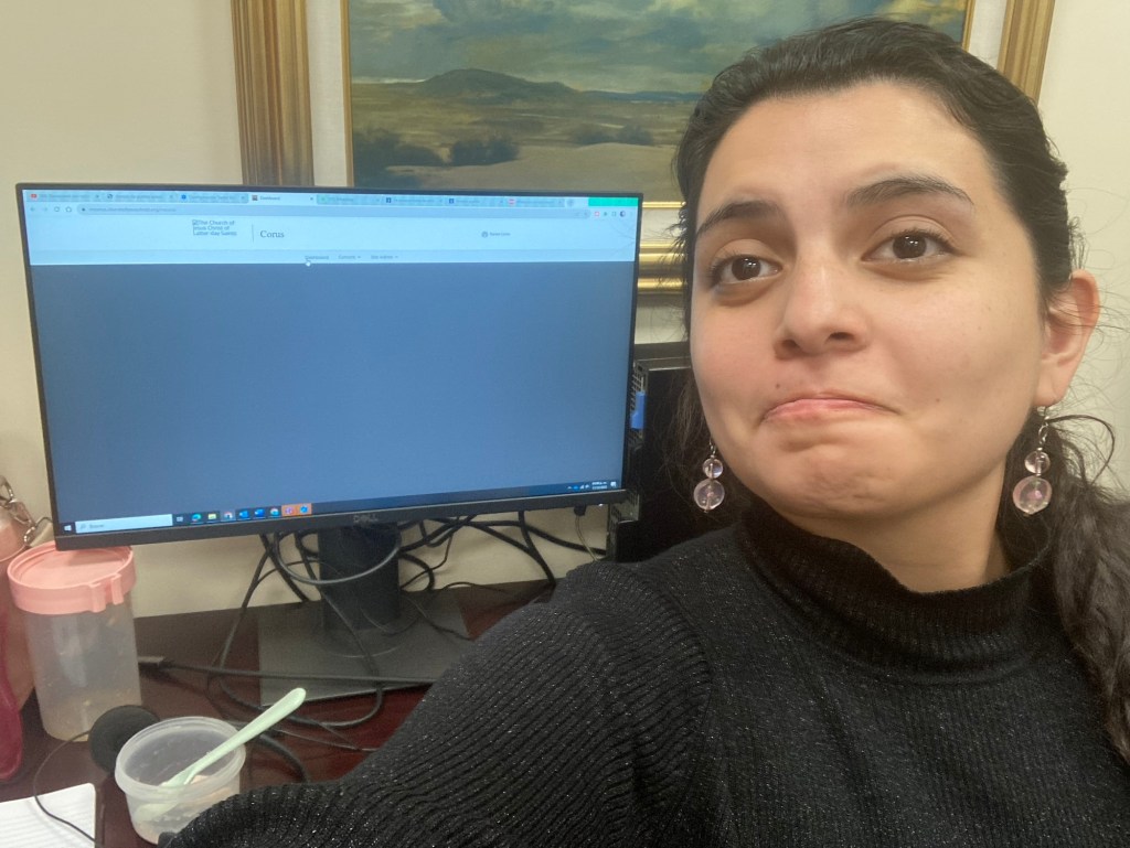 Tenía que publicar el anuncio de las puertas abiertas del templo de Puebla pero la plataforma no estaba funcionando y yo me sentía muy ansiosa. Sólo lo pude publicar desde mi celular, la oficina estaba llena de playeras y materiales de Ilumina el mundo para las Máquinas de Donación