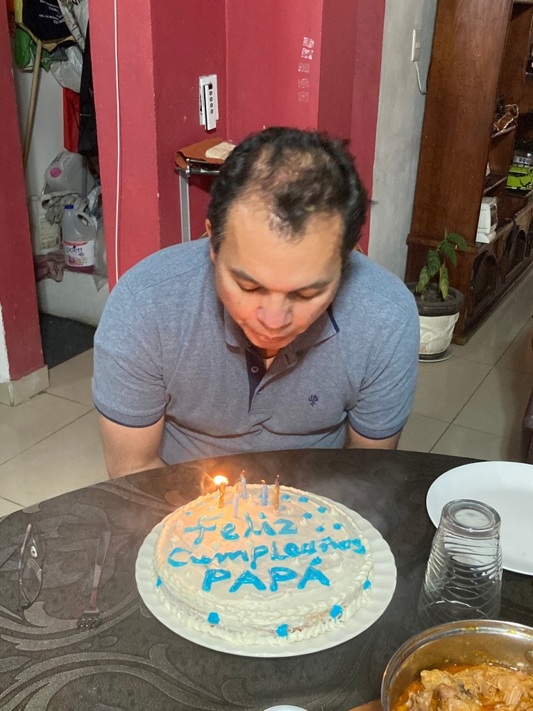 Antes de ir al templo horneé un pastel gluten-free para mi papá y al volver a casa se lo decoré y se lo dí para que le cantáramos las mañanitas por su cumpleaños. Fuimos al cine para celebrarlo y vimos una película muy interesante llamada «57 segundos».
