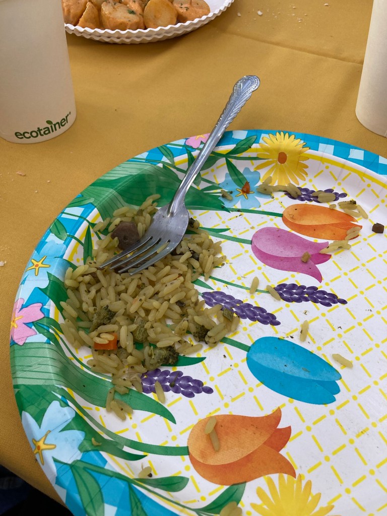 El viernes fue la fiesta para los voluntarios del CRIT y estuve con la hermana Acevedo de la misión Norte. Los chefs de la fiesta eran de Coronado y me dieron una paella vegana. Por la tarde fui a la carne asada del día del padre en la capilla, me dio mucho gusto que fue el hermano Amador, un hermano a quién habíamos visitado el miércoles porque no venía a la capilla desde hacía mucho.