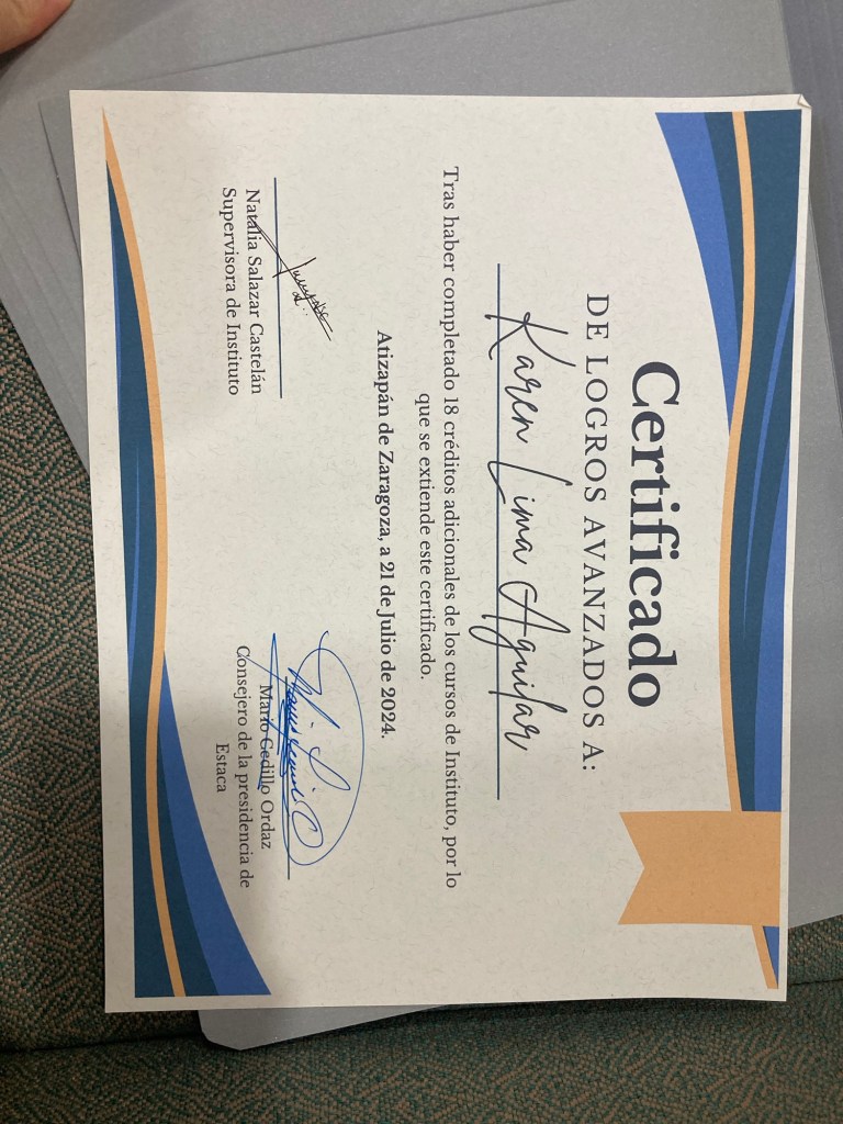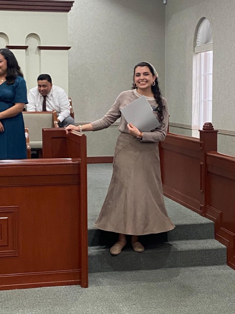 El domingo fui a los servicios por la mañana, tuve mi clase de escuela dominical y por la tarde fui a la graduación de instituto. Fue un momento muy bonito porque mi alumna Xime (la que pronto se va a la misión a República Dominicana) se graduó en un año. Me siento bendecida de ser su maestra y de ser misionera de servicio, porque tal vez de otro modo no podría haberle enseñado. También dirigí el número especial del Coro de instituto, me dieron un reconocimiento de logros avanzados de instituto por tantas clases que he tomado y ayudé a personas a inscribirse al próximo ciclo.