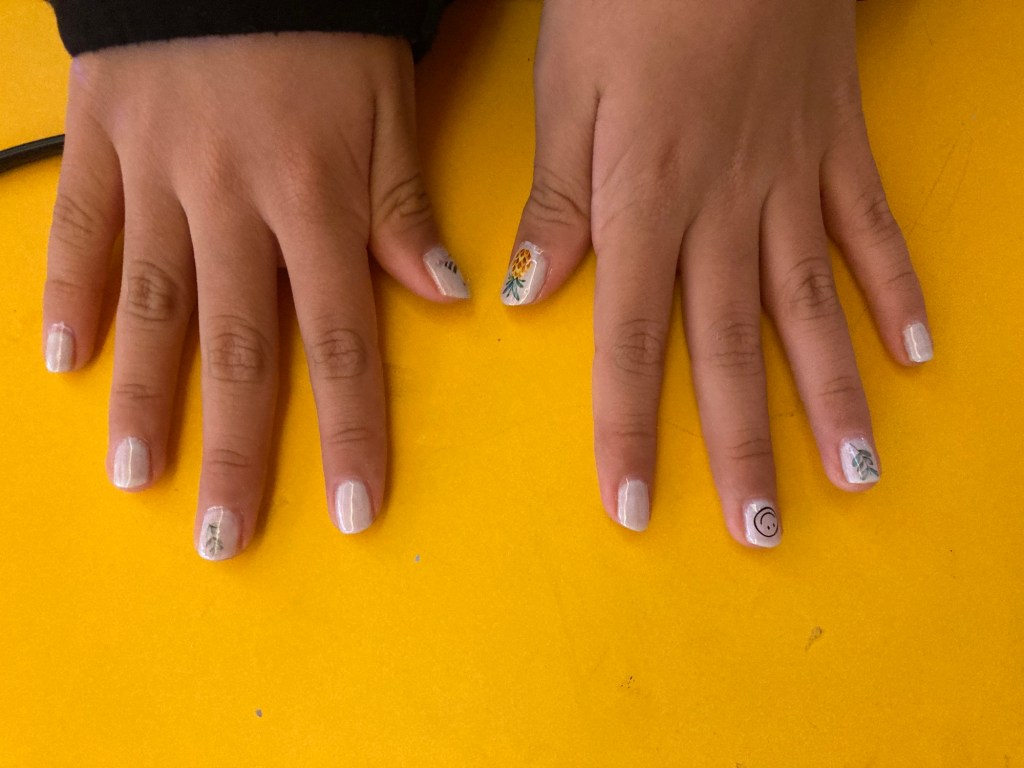 El miércoles fui al Crit Teletón a dar el taller de uñas de gelish. Yo sólo enseño a las mamás o a las abuelas a pintarse las uñas, pero llegó Penny, la hija de siete años de una de esas mamás y me pidió que le hiciera las uñas, su mamá dijo que sí y como ya era el final del día y no tenía más alumnas, le dije que sí. Penny me dijo que no le gustaba el rosa ni las flores así que le pinté las uñas de azul pastel y les puse stickers de piña, carita feliz, un pajarito y una planta. Ella estaba encantada y me dio mucha ternura verla tan feliz. Por la tarde fui a mi terapia.